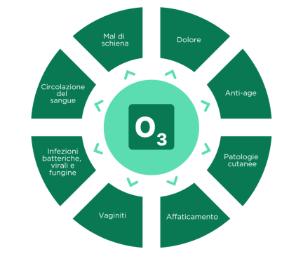 L’ossigeno ozonoterapia ha dimostrato di avere azione antitossica, antibatterica, antivirale, antimicotica, lipolitica (scioglie le cellule del grasso e la cellulite), antiedemigena (riduce i gonfiori e la ritenzione idrica), antitrombotica (migliora il microcircolo capillare), antinfiammatoria, antiossidante, analgesica (contro il dolore), decontratturante per i traumi muscolari, ed è coadiuvante nelle patologie neurologiche degenerative e nel trattamento delle malattie autoimmuni.